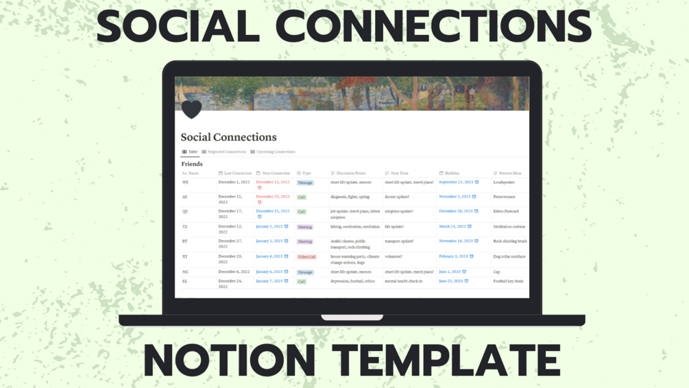 Social Connections Tracker Notion Template