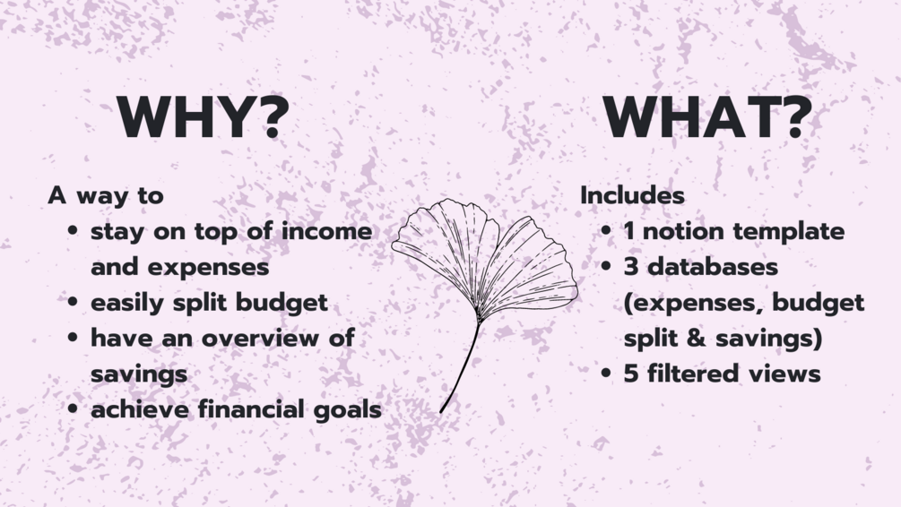 1 notion template with 3 databases (expenses, budget split & savings) and 5 filtered views